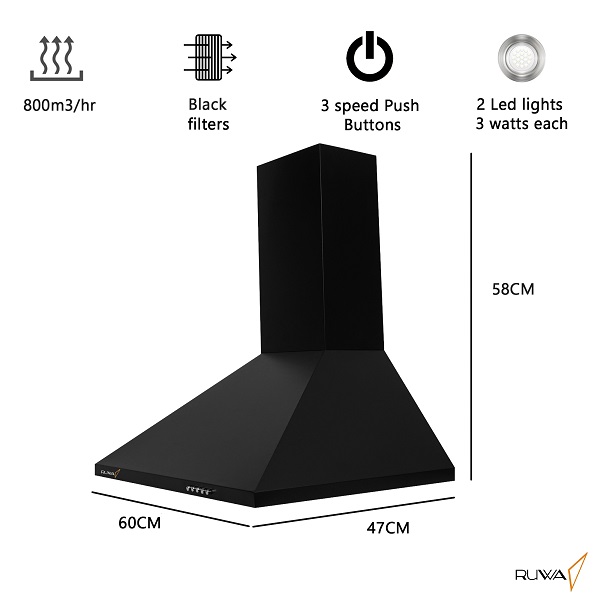 ‎Ruwa Dove Black 60cm Kitchen Chimney