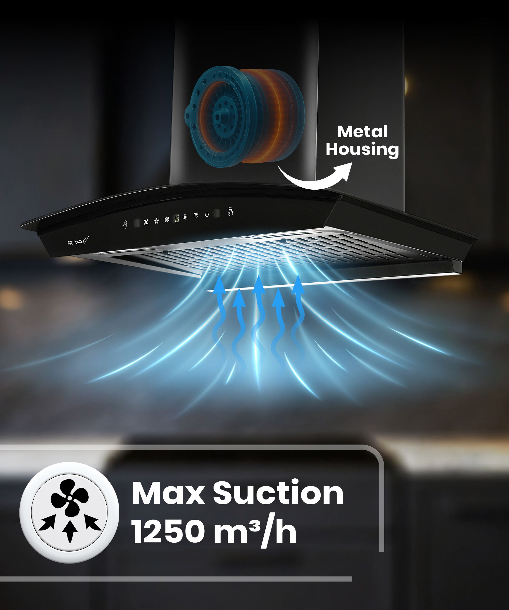Ruwa Rave Filterless 60 Auto Clean Wall Mounted Chimney 1250 CMH