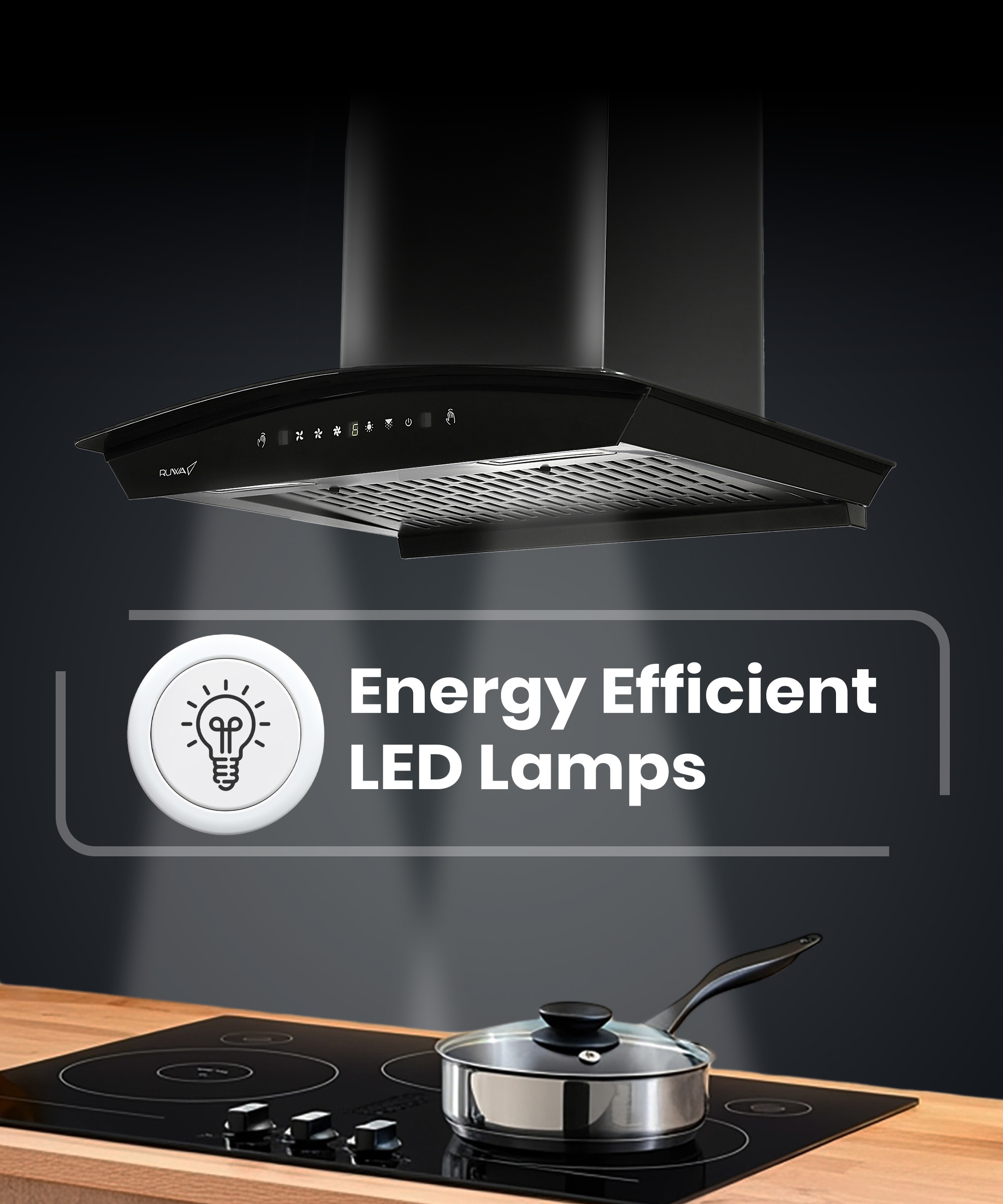 ‎Ruwa Dove Black 60cm Kitchen Chimney